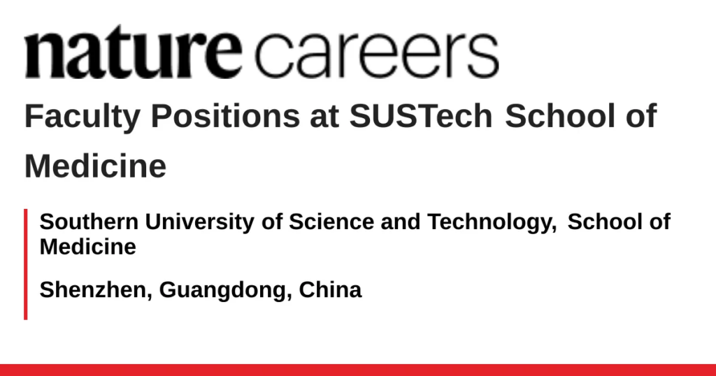The newly established Department of Human Cell Biology and Genetics at Southern University of Science and Technology (SUSTech) School of Medicine was established in July 2020. It aims to nurture future scientists, foster innovative research, and serve society. Positions at all ranks are available immediately: The department invites applications for full-time tenure-track or tenured faculty positions at the assistant professor, associate professor, and professor in cell biology or genetics.